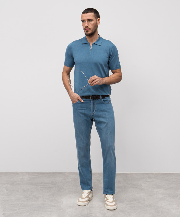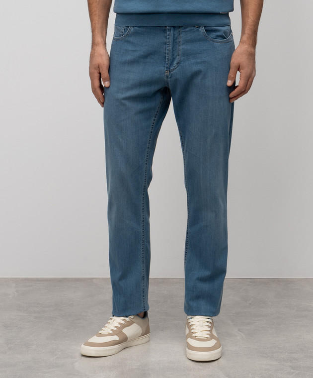 Голубые джинсы с эффектом потертости