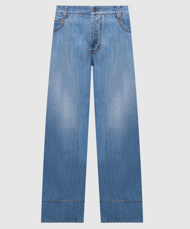 Голубые джинсы с эффектом потертости