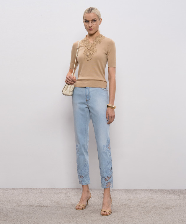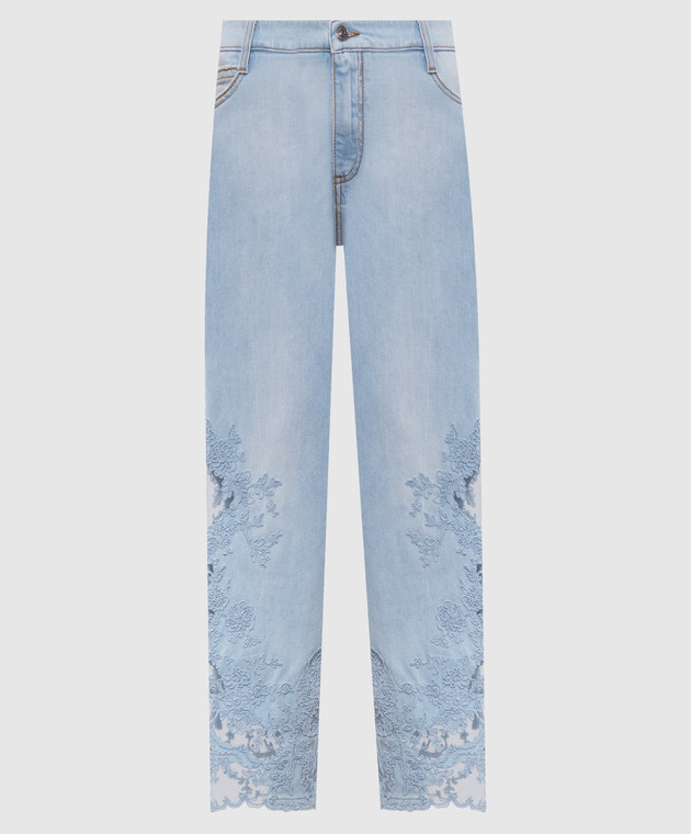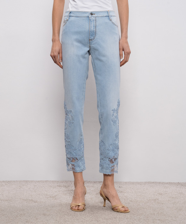 Голубые джинсы с кружевом