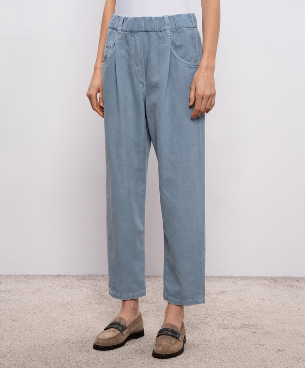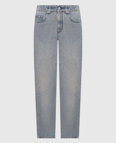 Голубые джинсы с льном с патчем логотипа