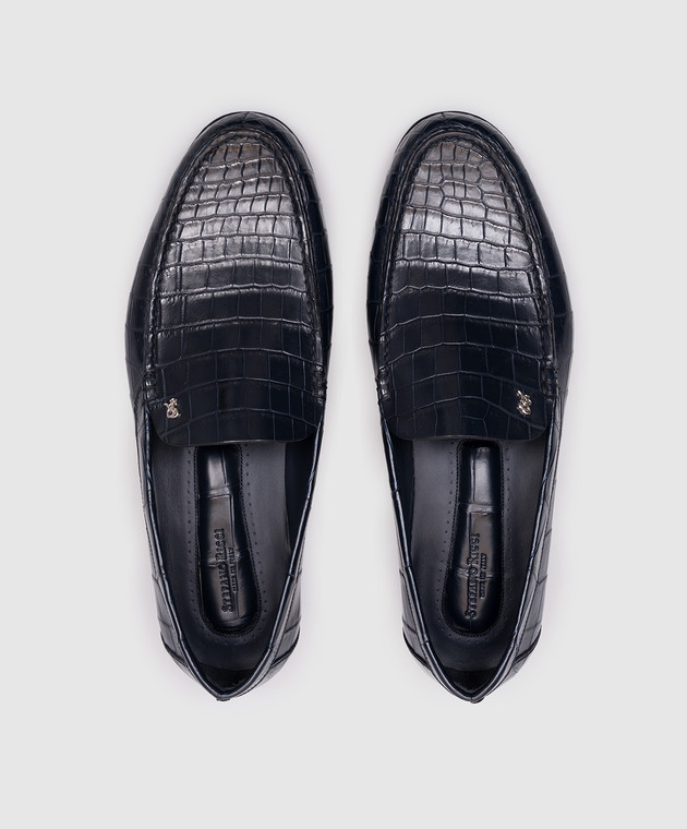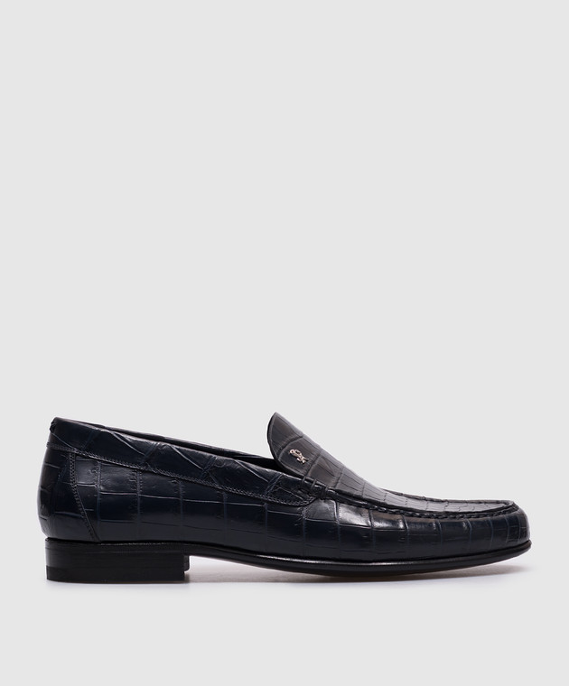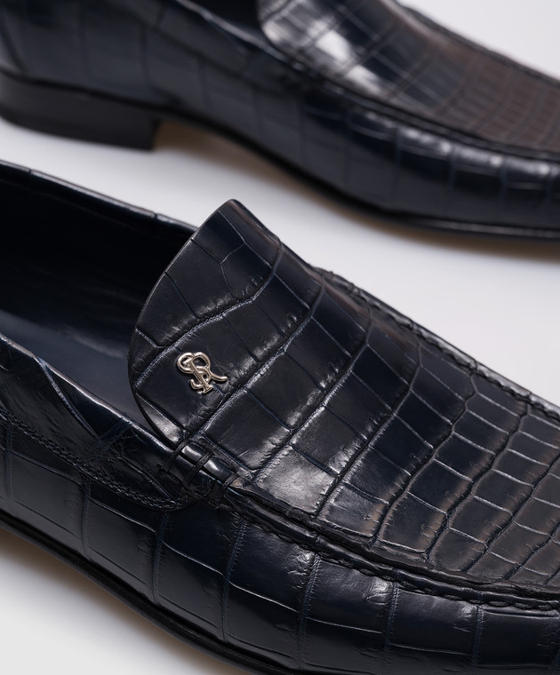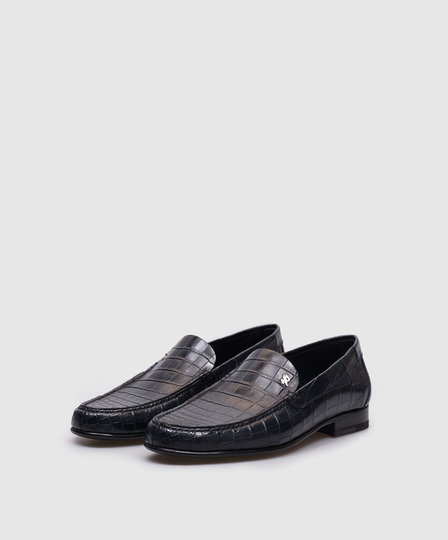 Голубые лоферы из кожи крокодила с металлической монограммой логотипа