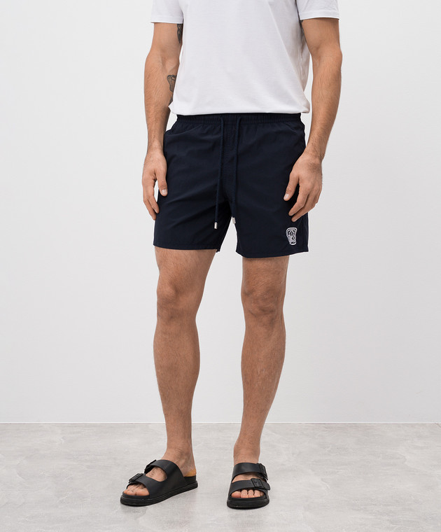 Голубые шорты для плавания с вышивкой логотипа эмблемы