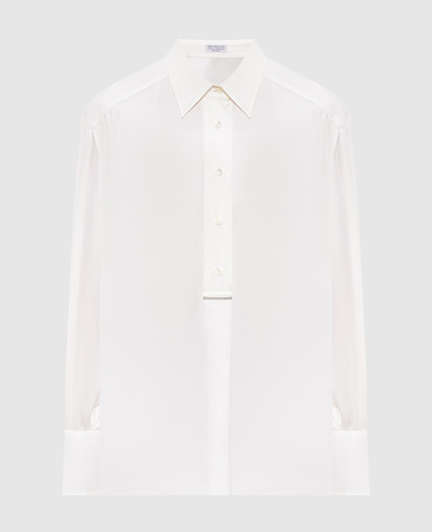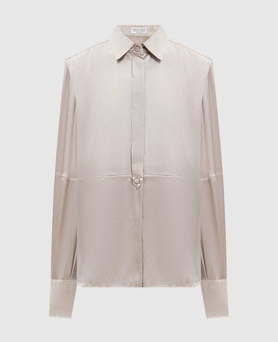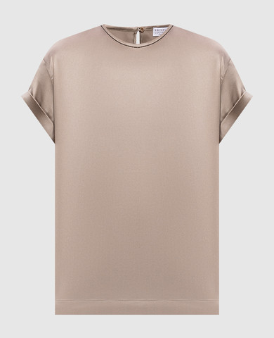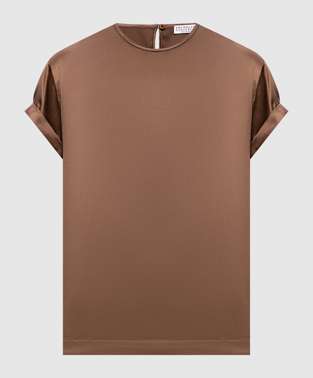 Коричневая блуза из шелка с отворотами