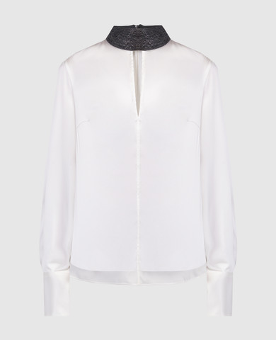 Коричневая блуза из шелка в клетку