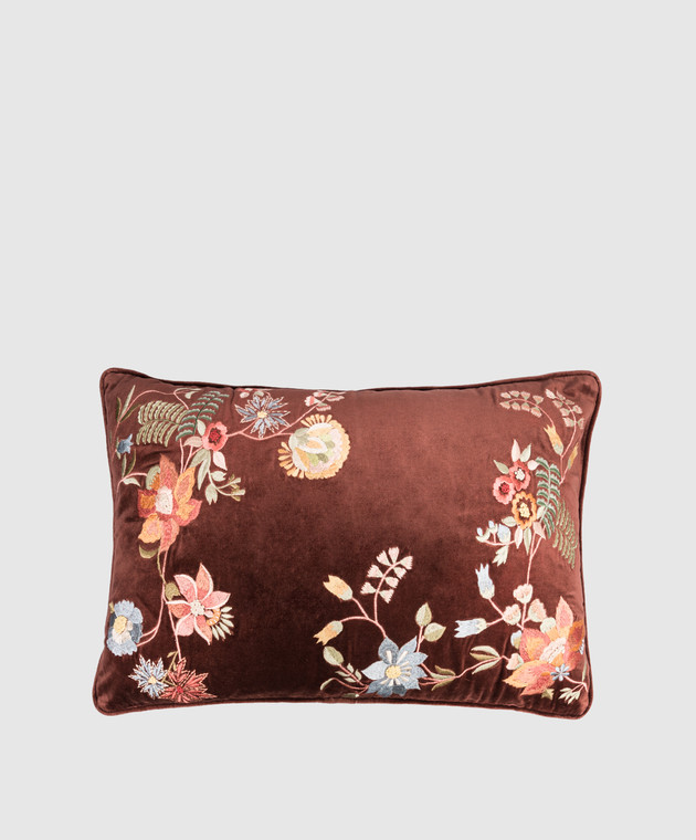 Коричневая декоративная бархатная подушка с шелком