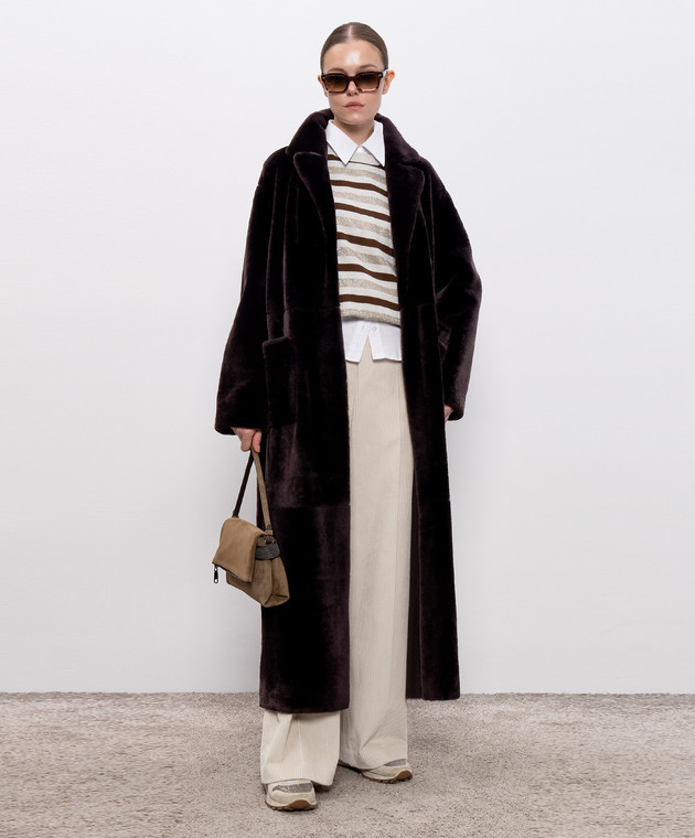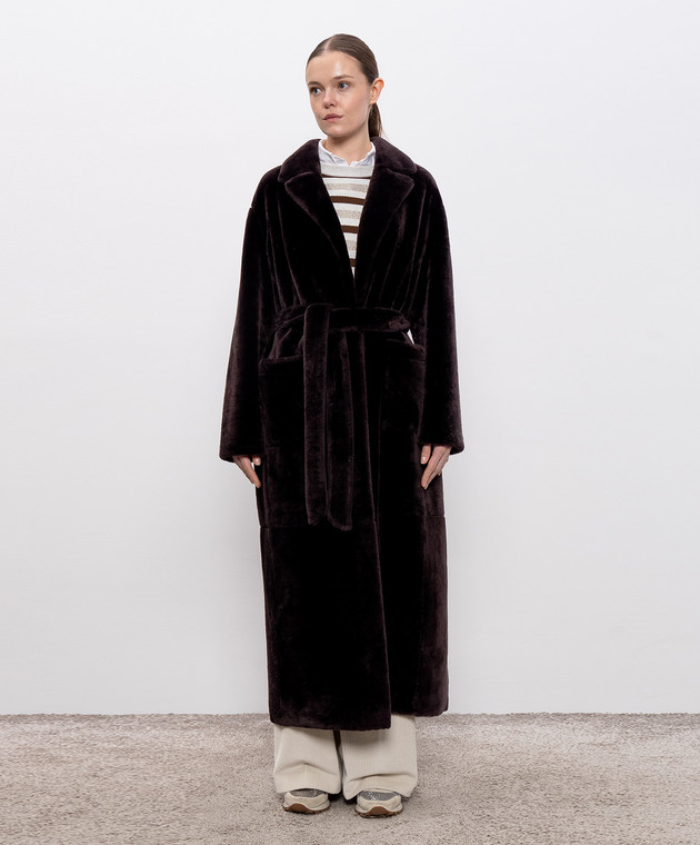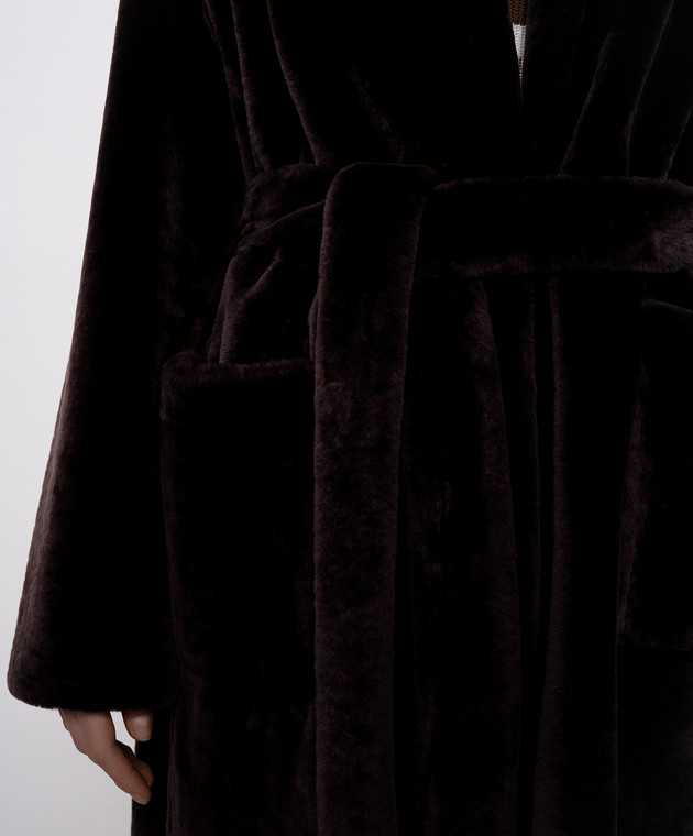 Коричневая дубленка с поясом