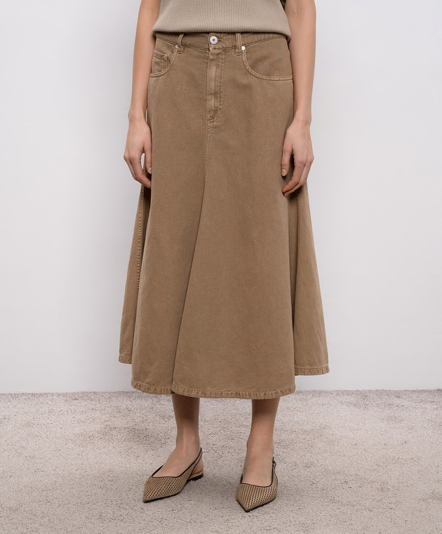 Коричневая джинсовая юбка с леном