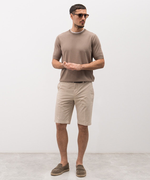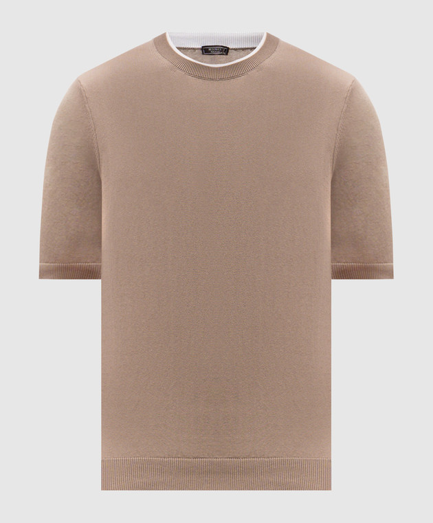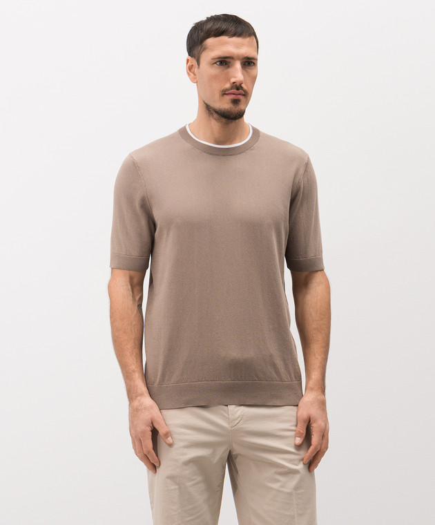 Коричневая футболка из хлопка с эффектом наложения слоев