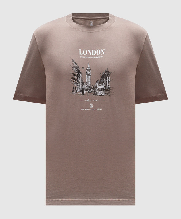 Коричневая футболка London с принтом