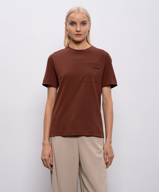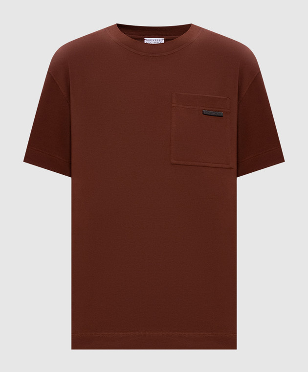 Коричневая футболка с карманом