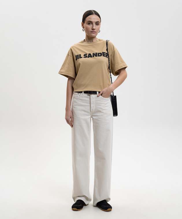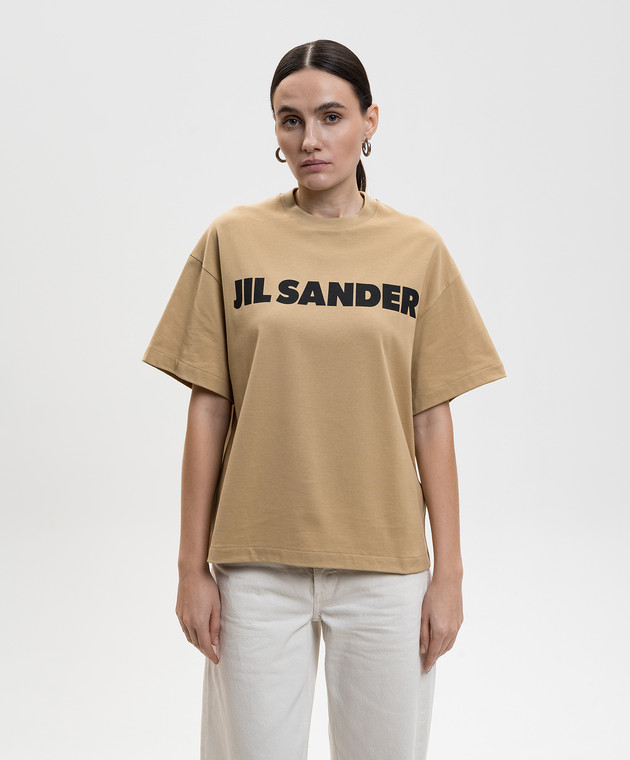 Коричневая футболка с контрастным принтом логотипа
