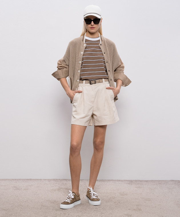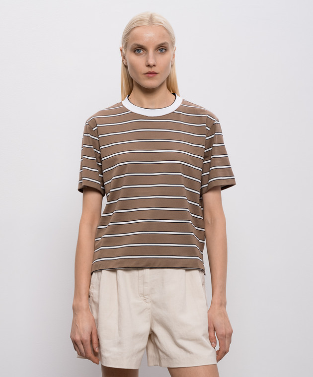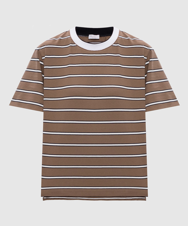 Коричневая футболка в полоску с цепочкой мониль