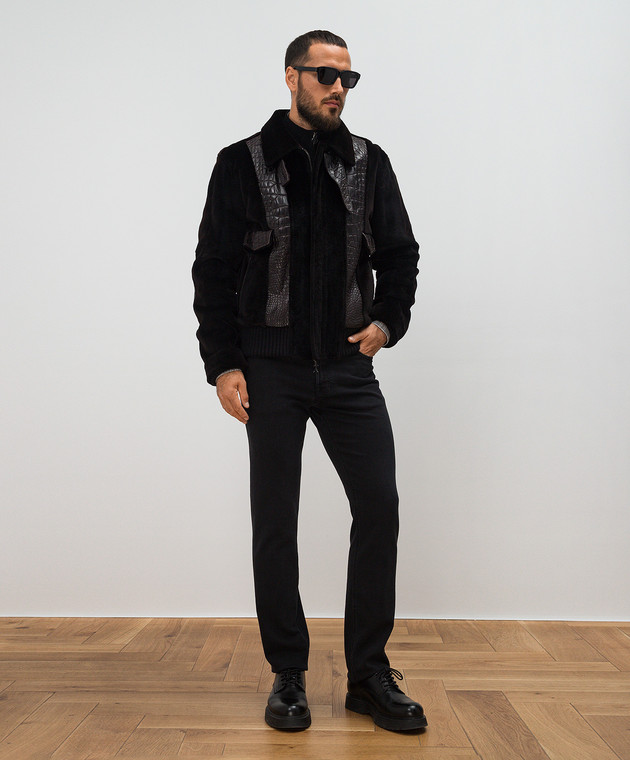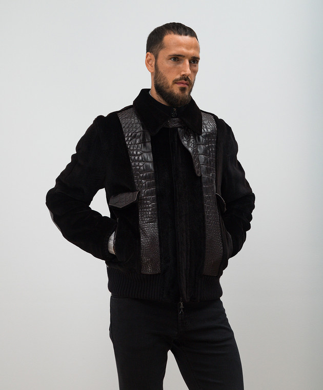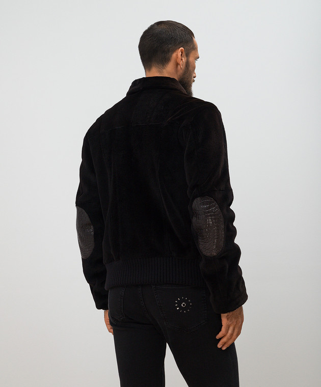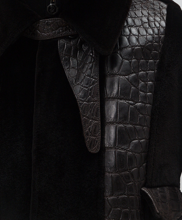 Коричневая комбинированная куртка из меха норки и кожи крокодила