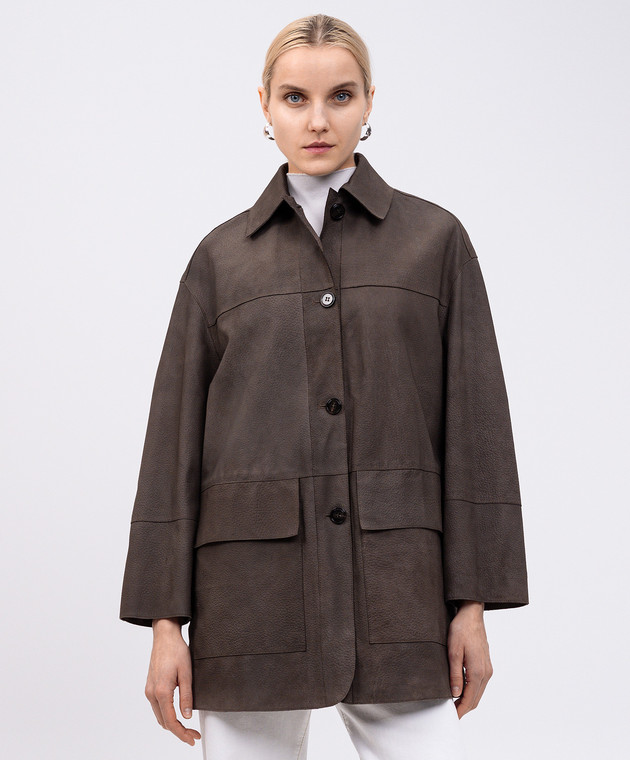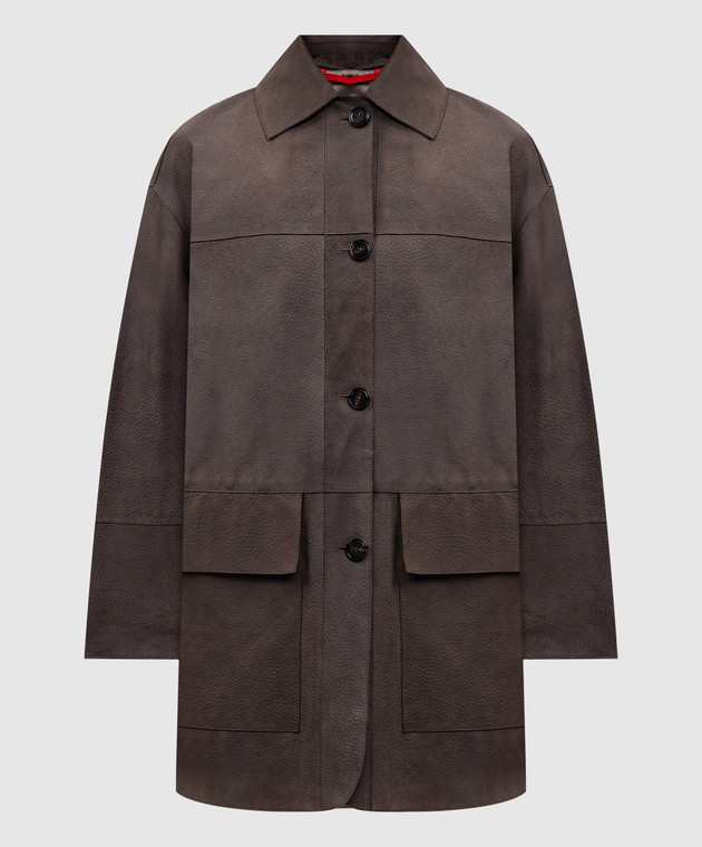 • Декор тиснение зерно, нашивка с тиснением монограммы логотипа, разрезы в боковых швах на хлястиках