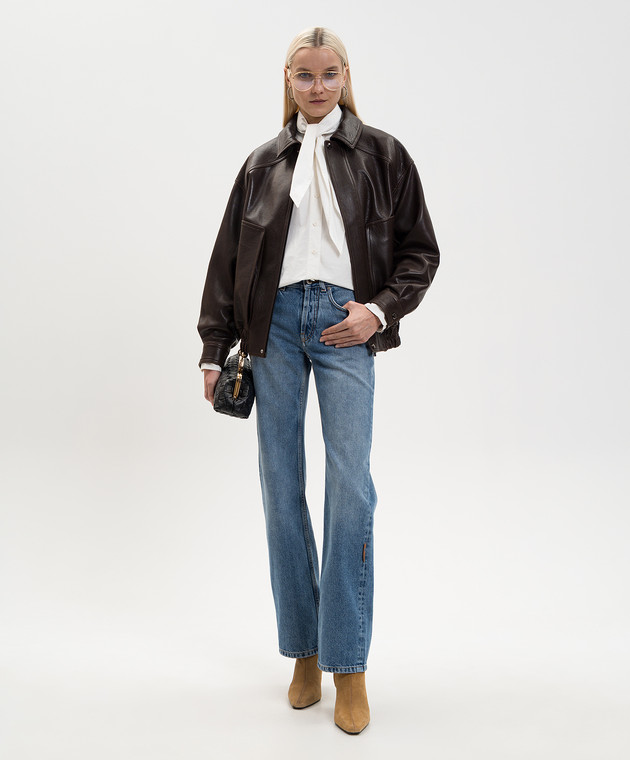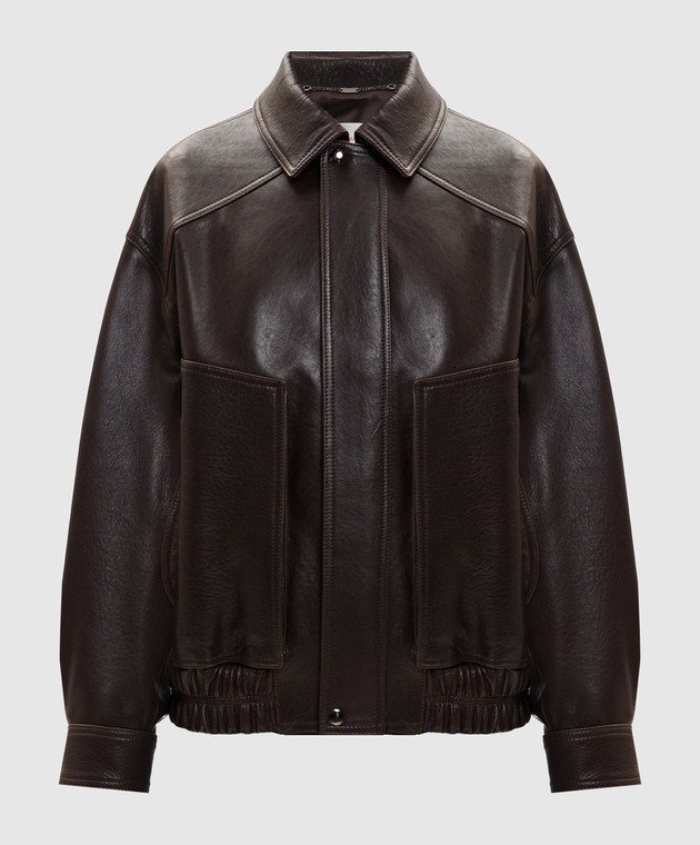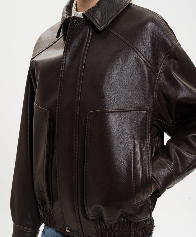 Коричневая кожаная куртка с драпировкой