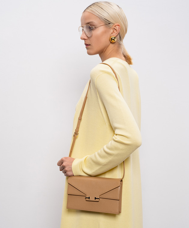 Коричневая кожаная сумка-мессенжер AUBE с логотипом