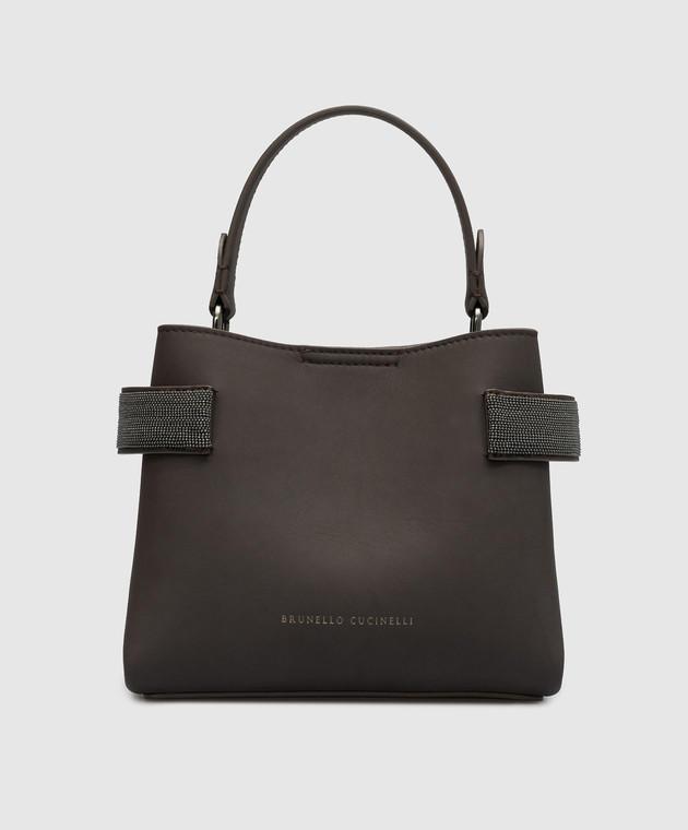 Коричневая кожаная сумка-мини с цепочкой мониль