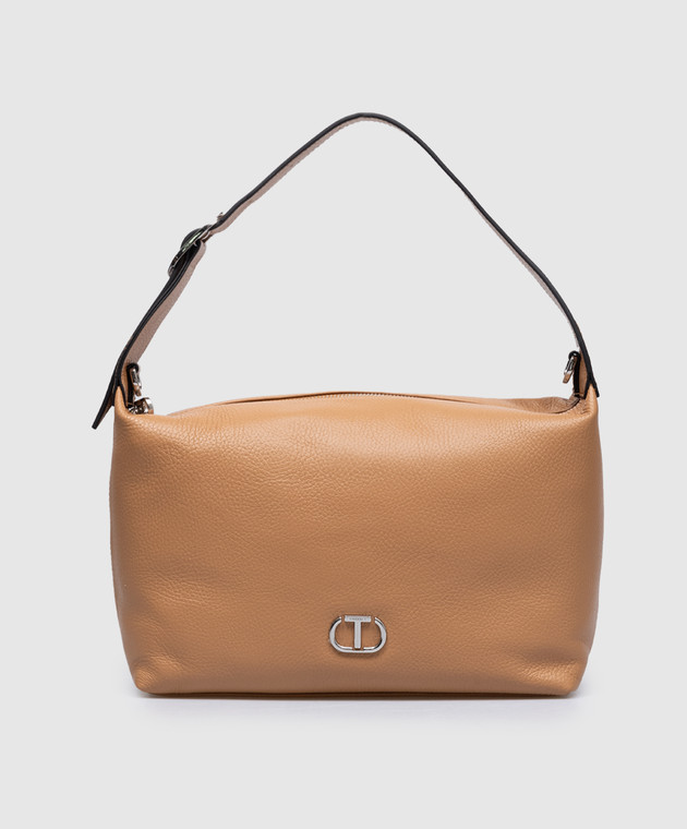 Коричневая кожаная сумка с логотипом Oval T