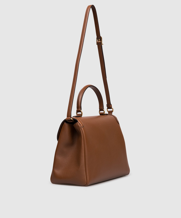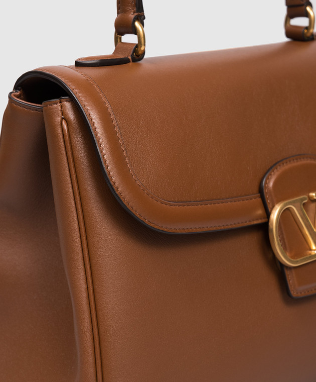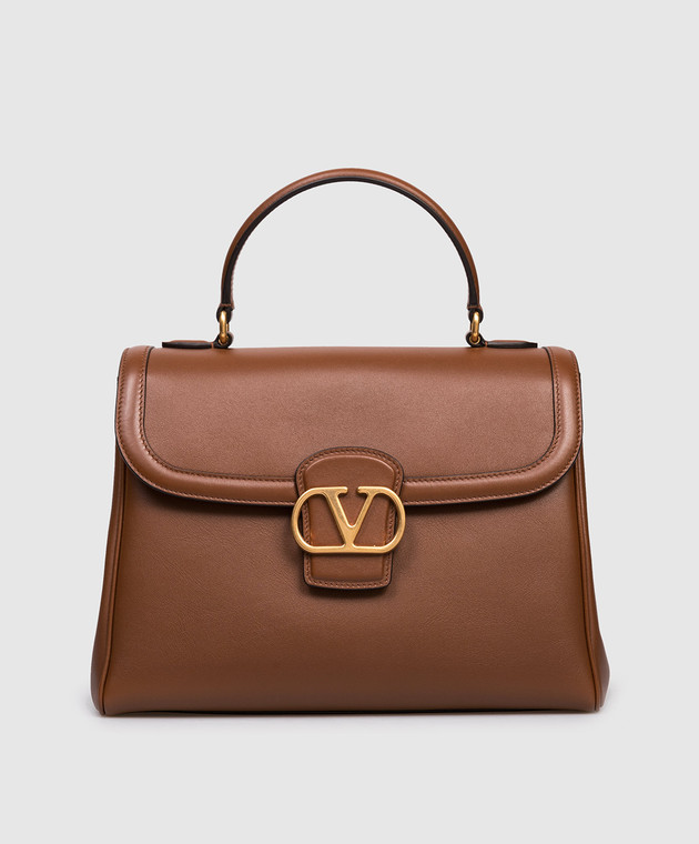 Коричневая кожаная сумка с логотипом VLogo Signature