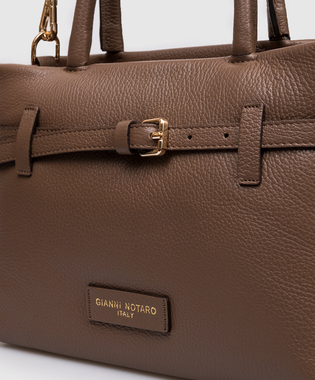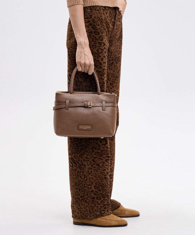 Коричневая кожаная сумка с патчем логотипа