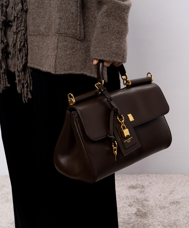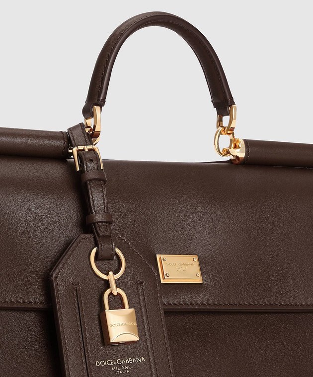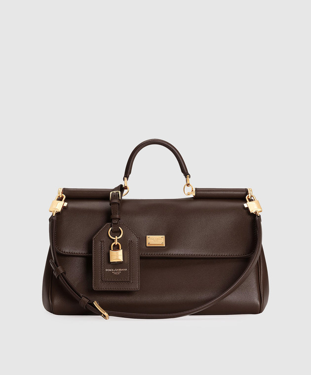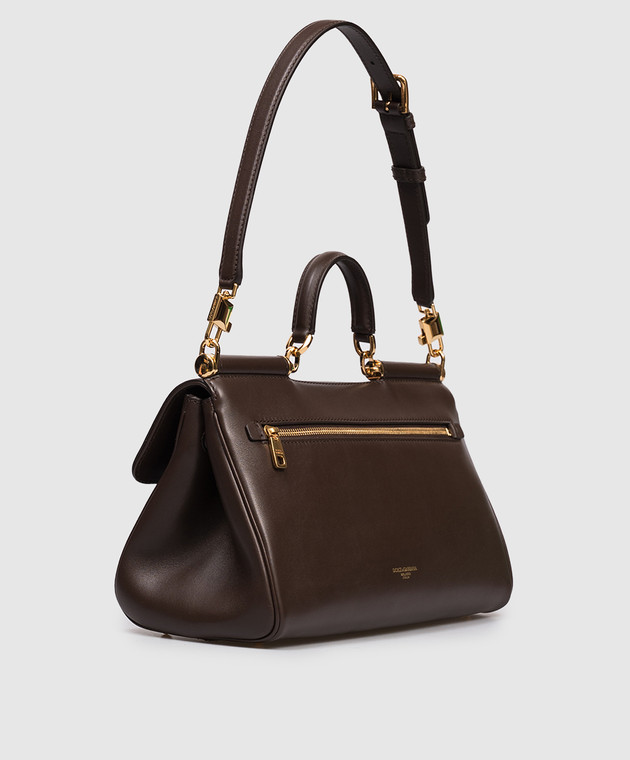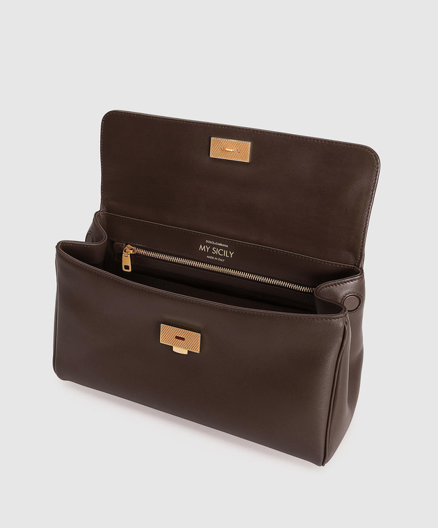 Коричневая кожаная сумка-сетчел Sicily с логотипом