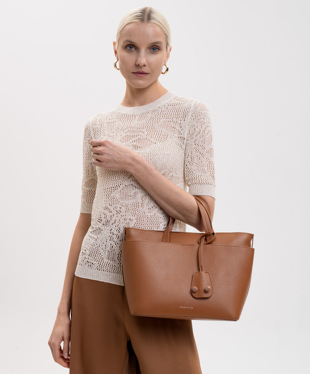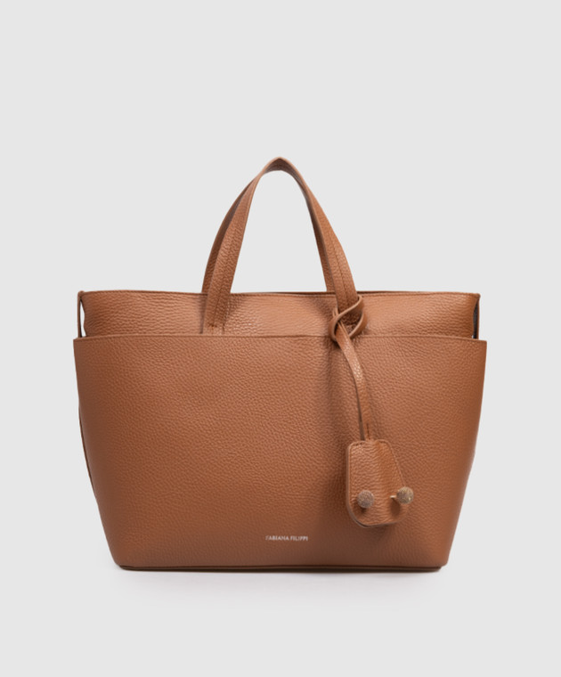 Коричневая кожаная сумка-тоут с логотипом