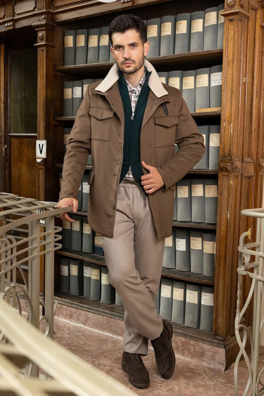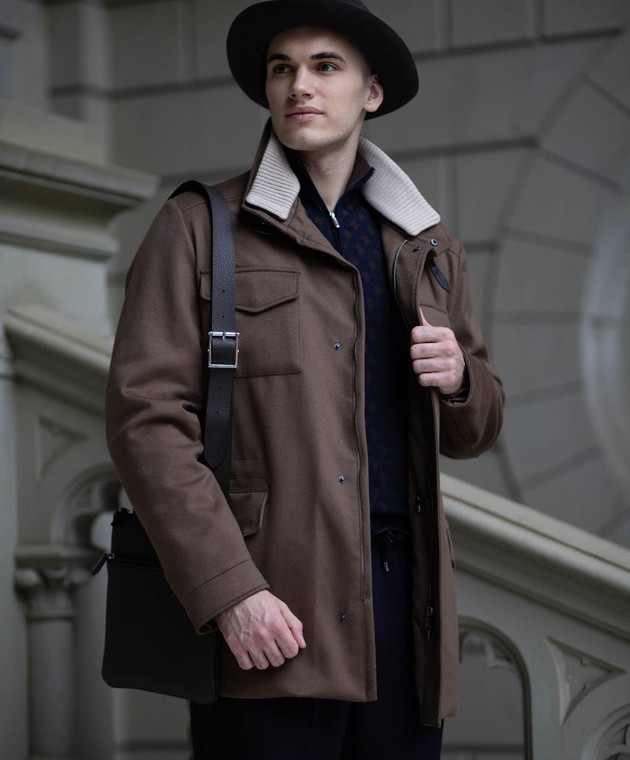 Коричневая куртка из кашемира с накладными карманами