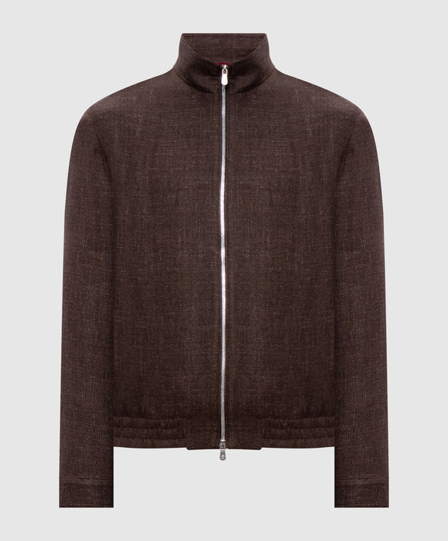 Коричневая куртка из льна, шерсти и шелка