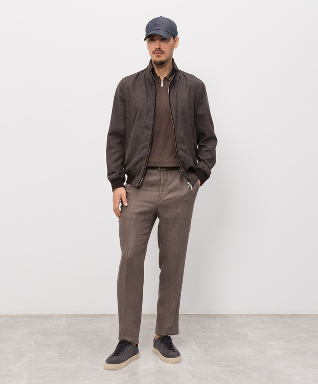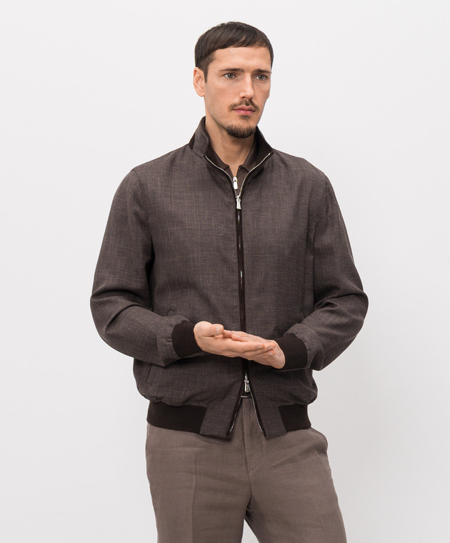 Коричневая куртка из шерсти, шелка и льна