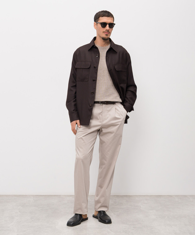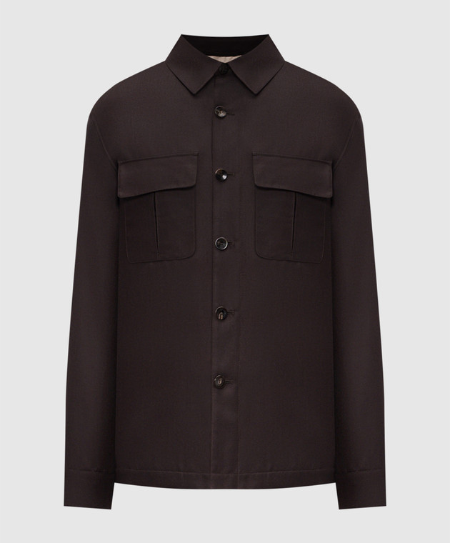 Коричневая куртка с кашемиром и шелком в стиле рубашки