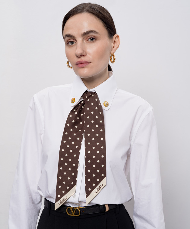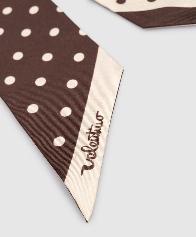 Коричневая лента твили из шелка в горох