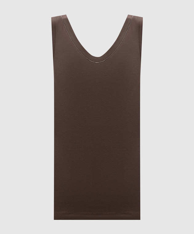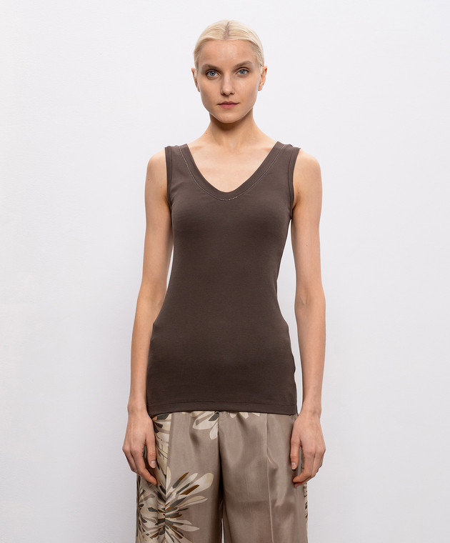 Коричневая майка в рубчик с цепочкой