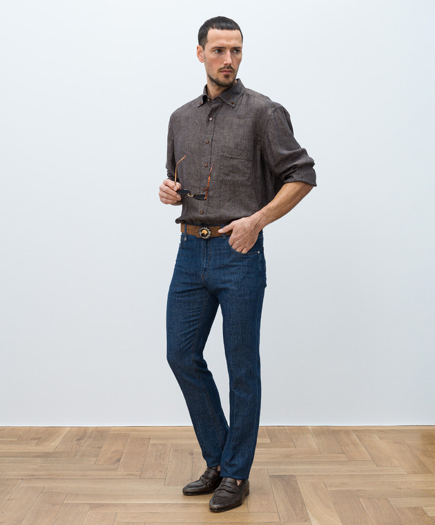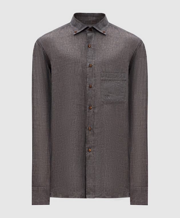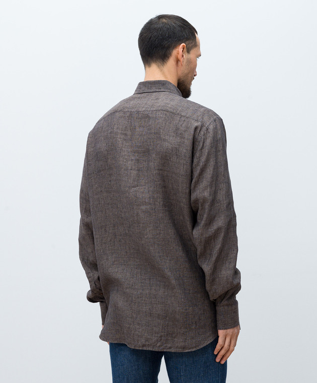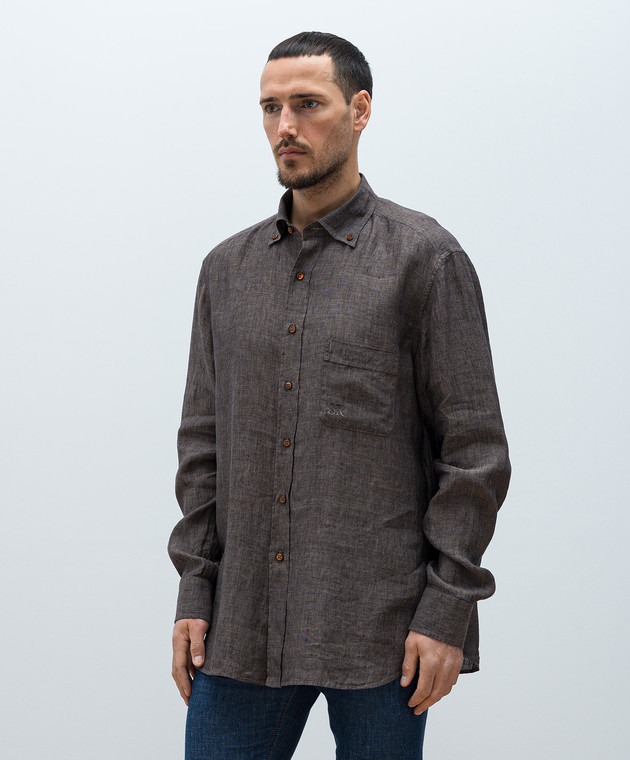 Коричневая рубашка из льна с монограммой логотипа
