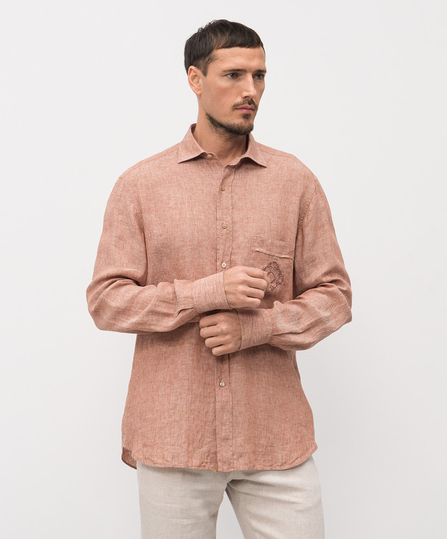 Коричневая рубашка из льна