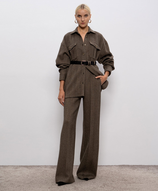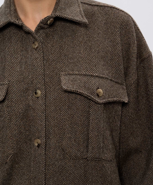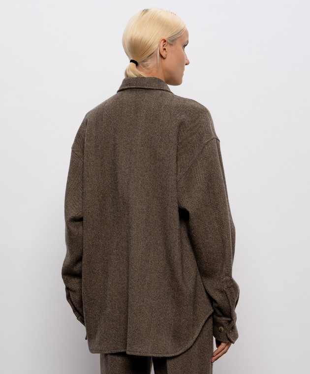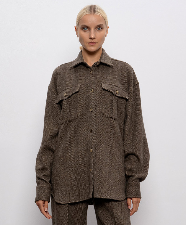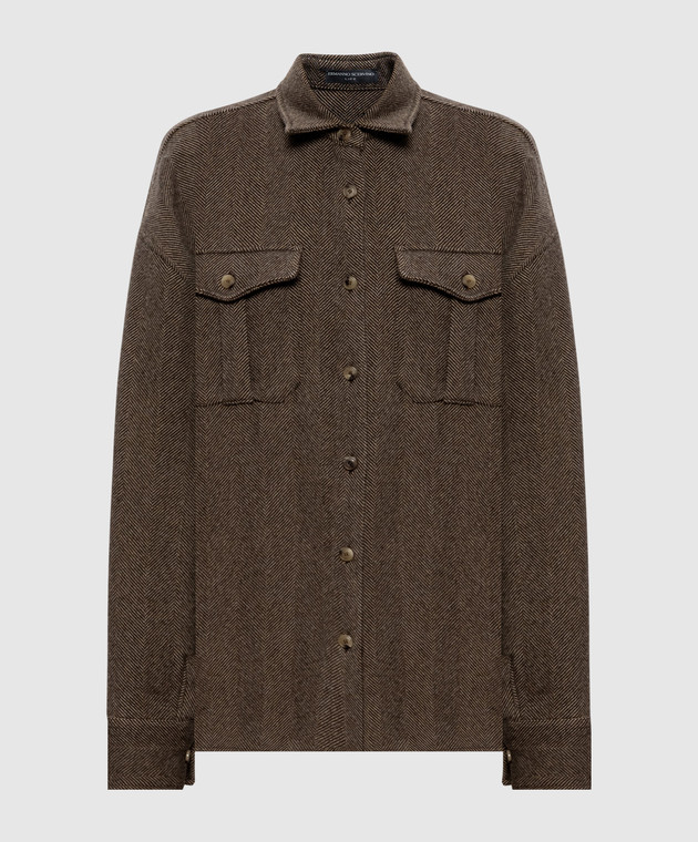 Коричневая рубашка из шерсти, шелка и кашемира в узор