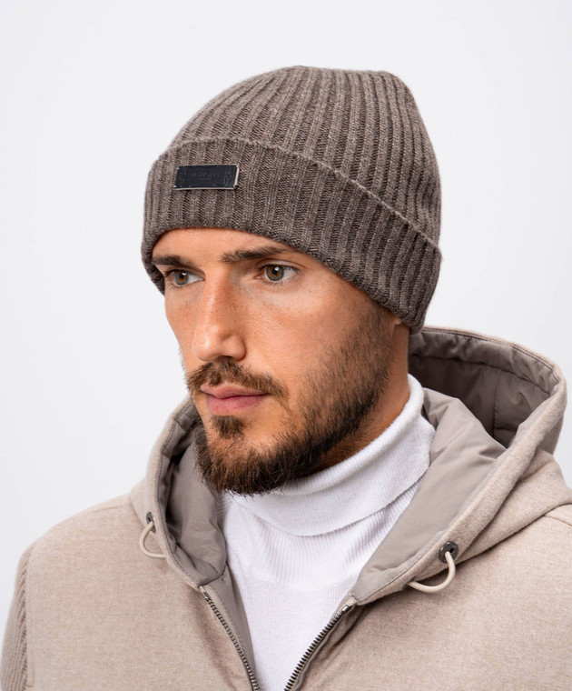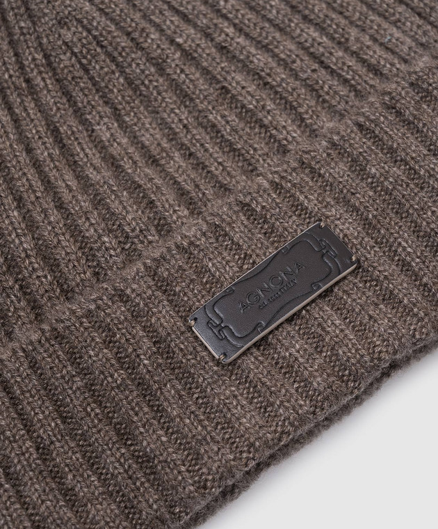 Agnona Коричневая шапка из кашемира в рубчике с патчем логотипа MK06U201K080H