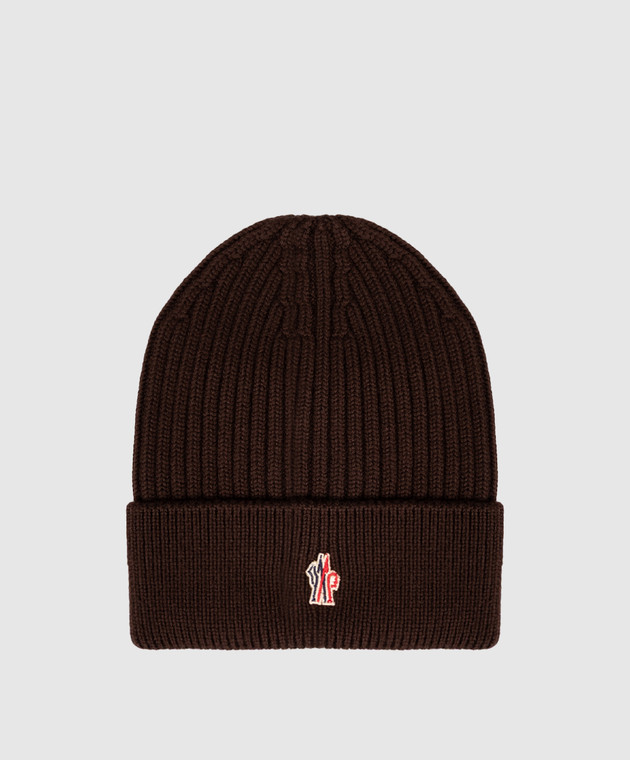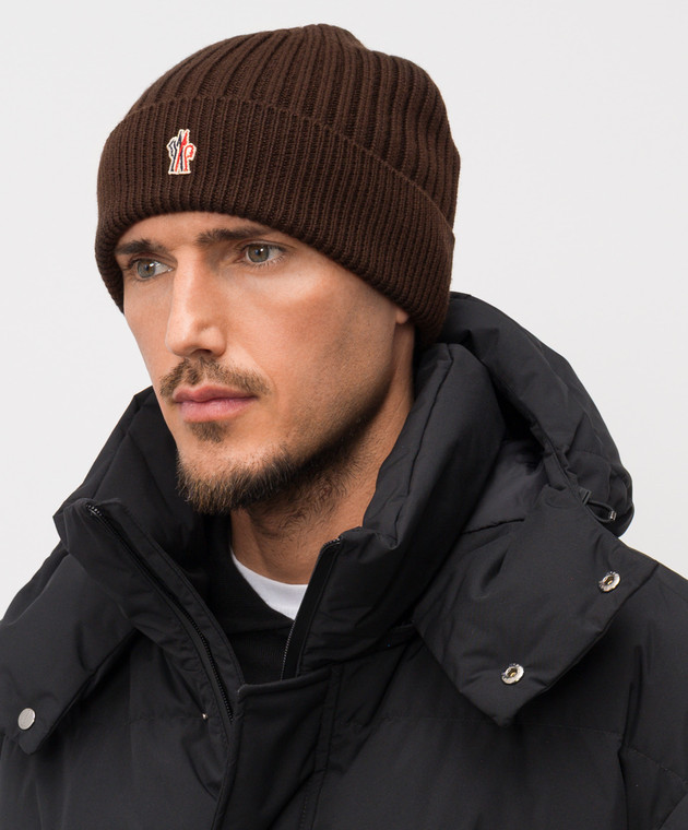 Коричневая шапка из шерсти с эмблемой