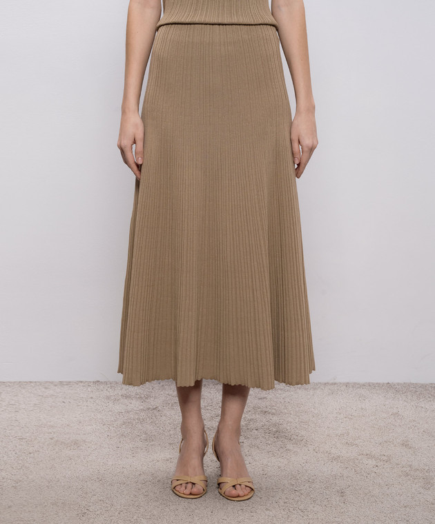 Коричневая юбка миди с шелком