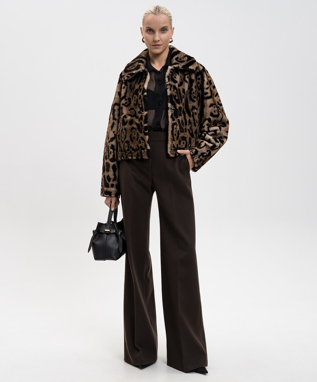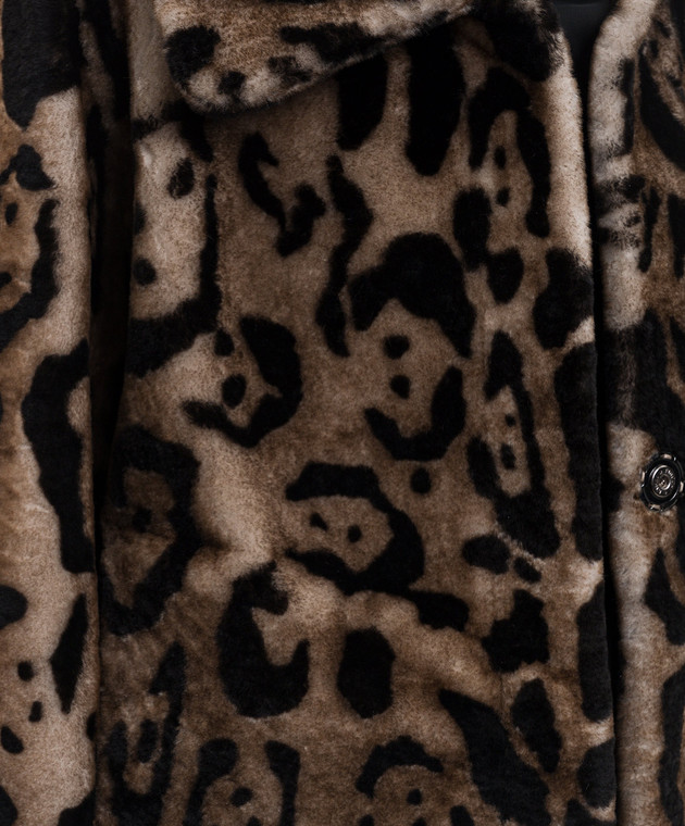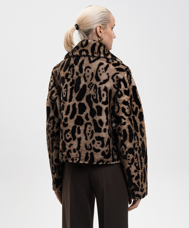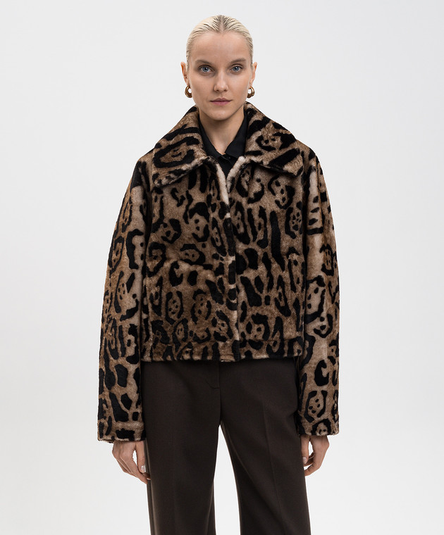 Коричневая укороченная дубленка в анималистичный принт