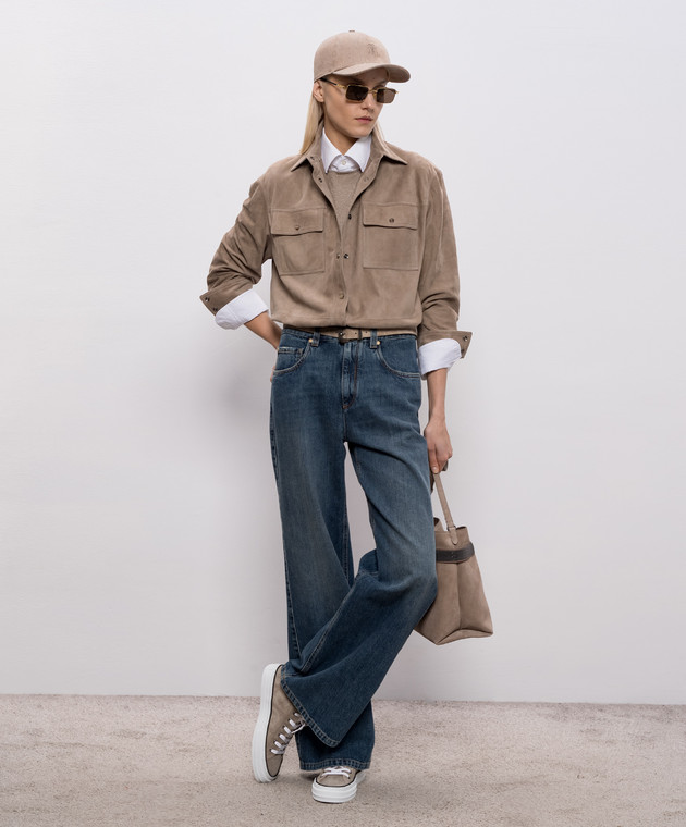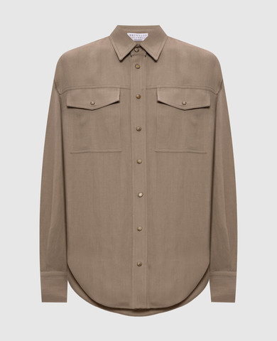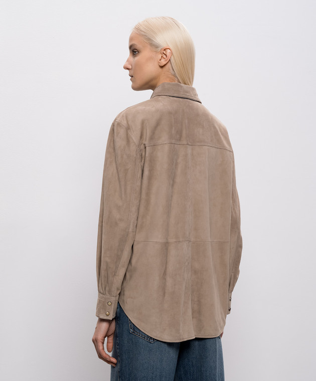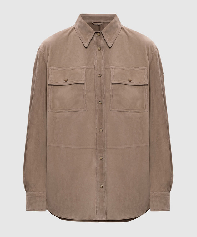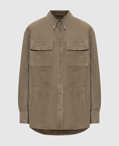 Коричневая замшевая рубашка с цепочкой мониль
