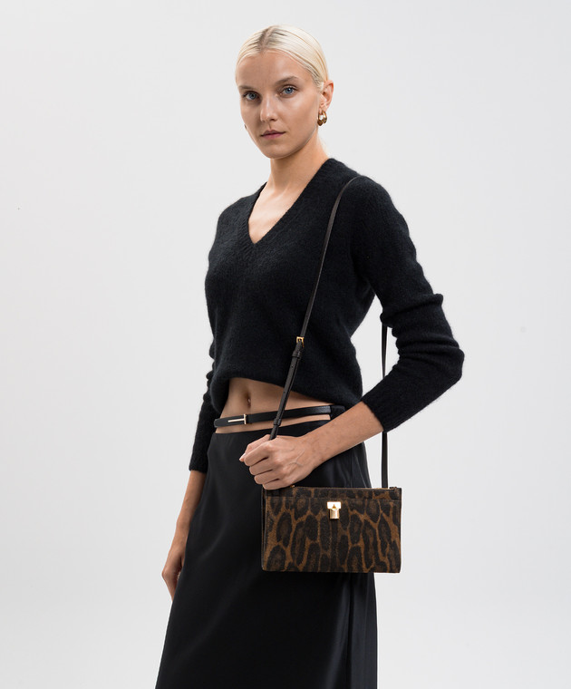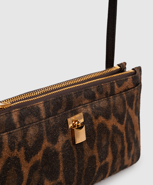 Коричневая замшевая сумка кросс-боди в анималистическом принте