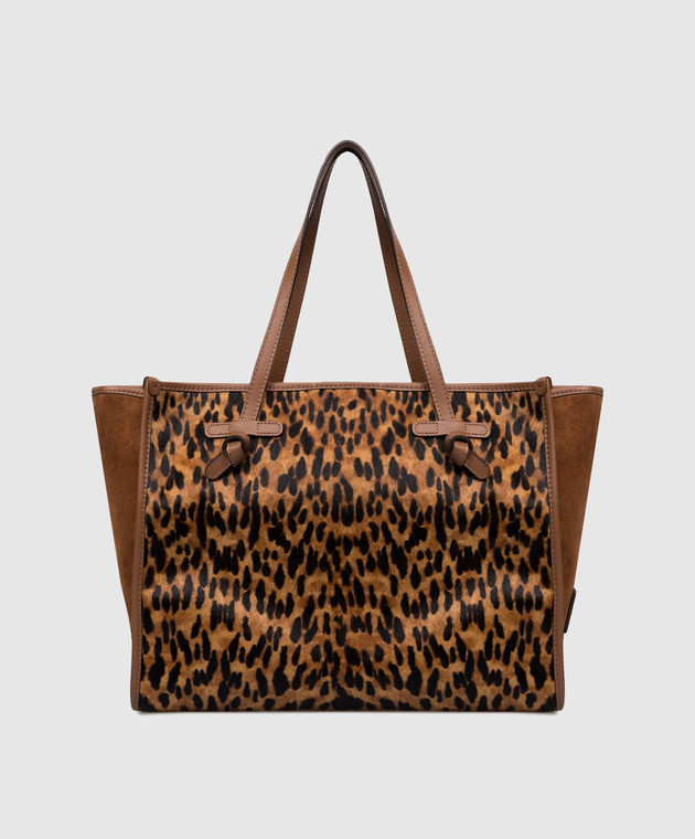 Коричневая замшевая сумка-тоут MARCELLA в анималистический принт