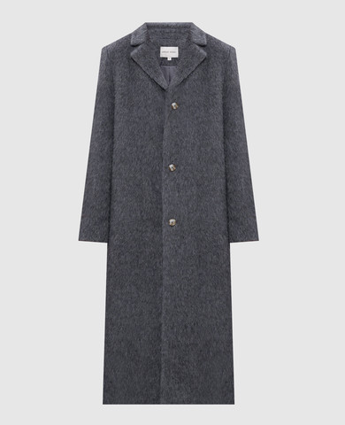 Коричневое двубортное меланжевое пальто из шерсти свободного кроя