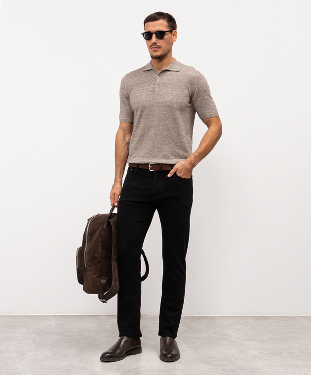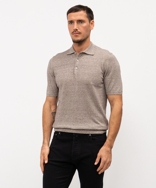 Коричневое меланжевое поло с леном VINAL
