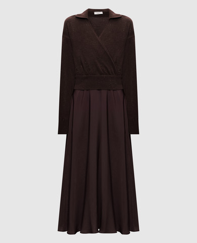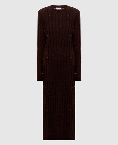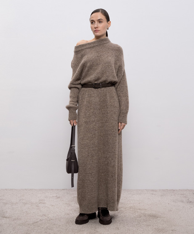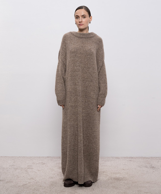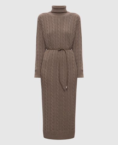 Коричневое платье макси с шерстью альпаки и кашемиром