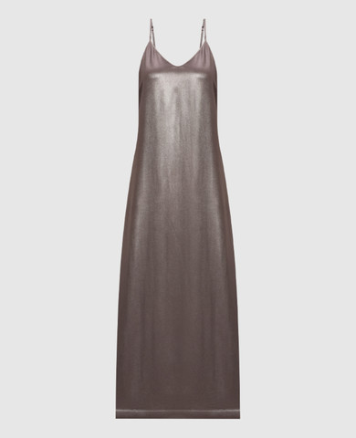 Коричневое платье миди с шерстью и шелком двойной конструкции
