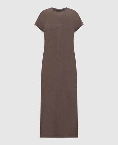 Коричневое платье мини из шелка
