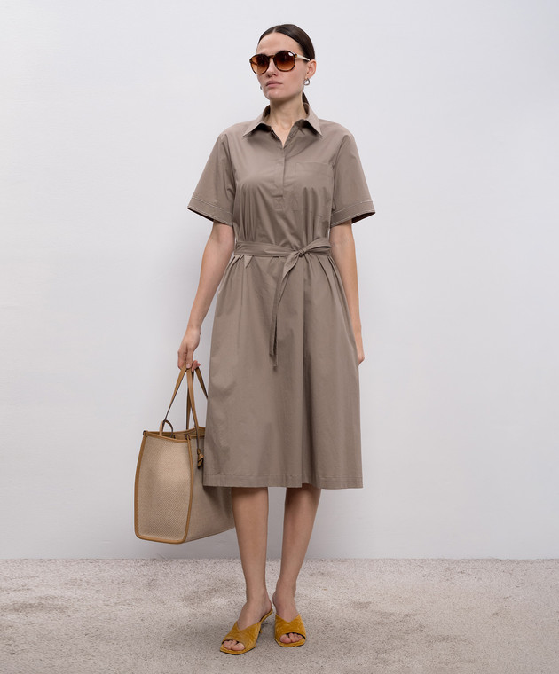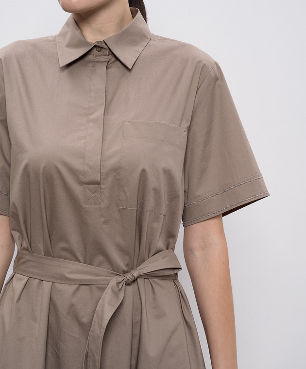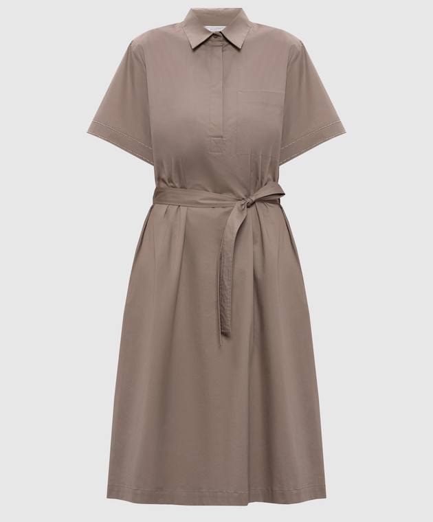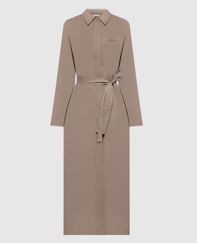 Коричневое платье-рубашка с цепочкой мониль