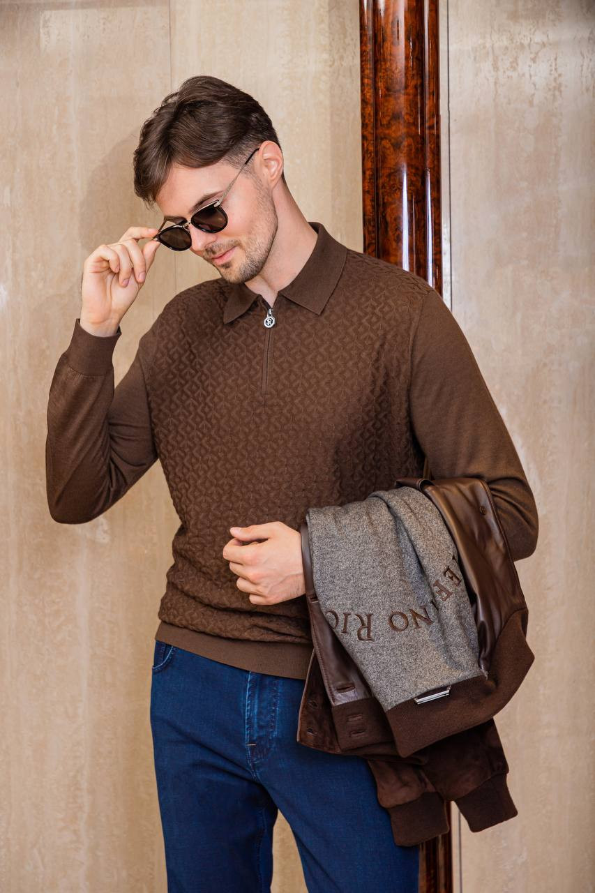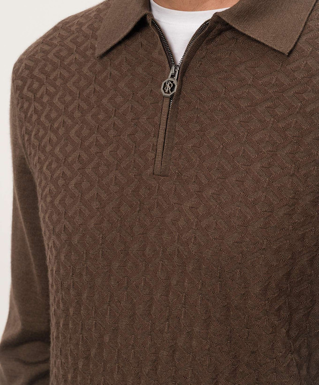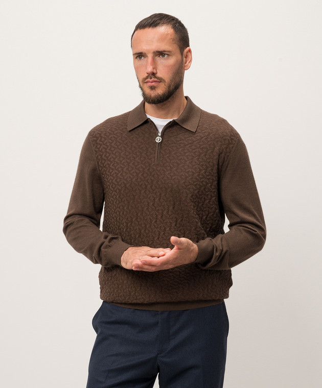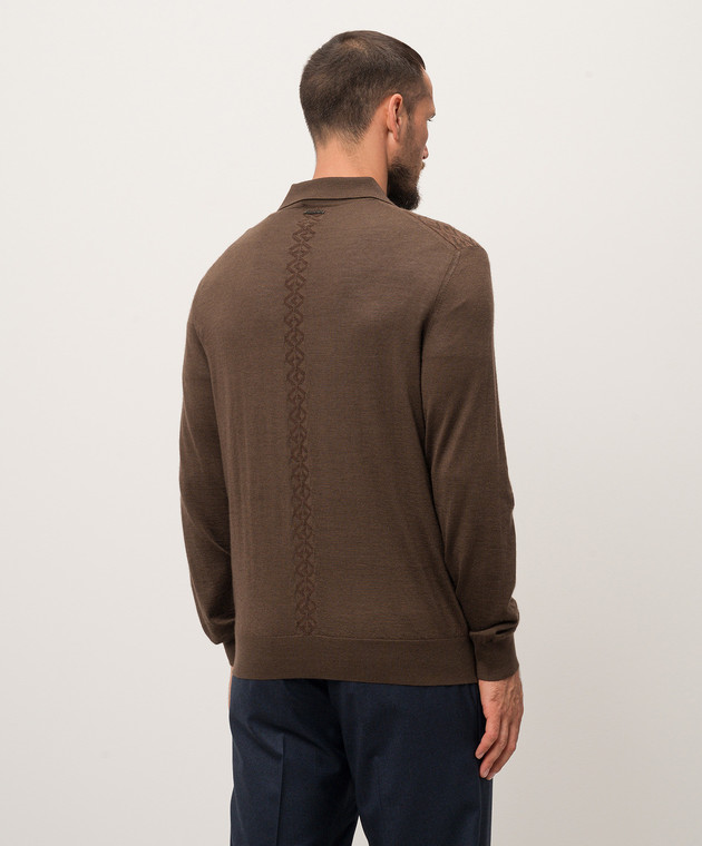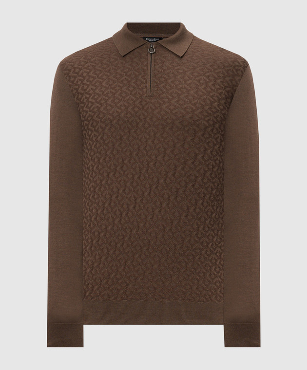 Коричневое поло из кашемира и шелка с металлическим логотипом