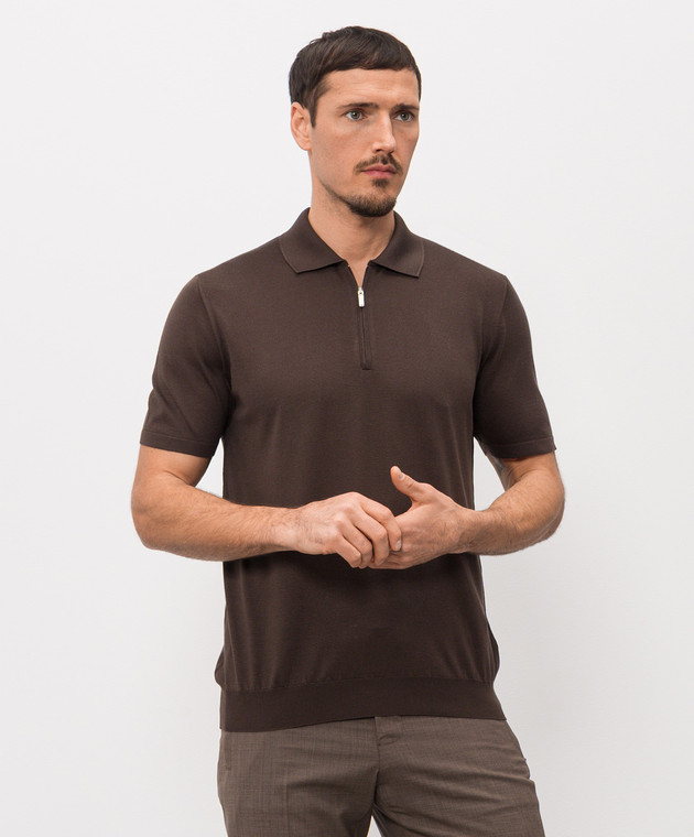Коричневое поло из шелка